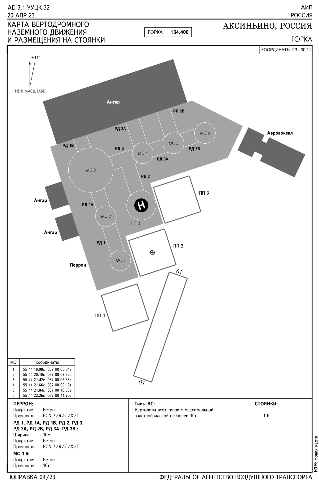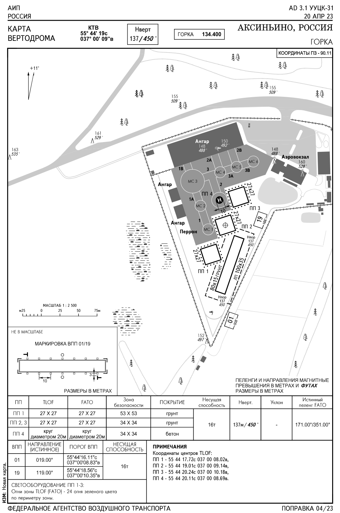 Координаты КТА вертодрома: N55'44'24, E037'00'10 Местоположение: 1 км северо-восточнее н.п. Аксиньино